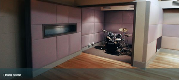 Medici Studios features a 7m x 5m control room, 8m x 7m recording room and isolation room. The isolation room door can be easily opened up to enable the room to form part of the studio, or it can be sealed to create perfect isolation of instruments, such as drums, or for acoustic effect. |